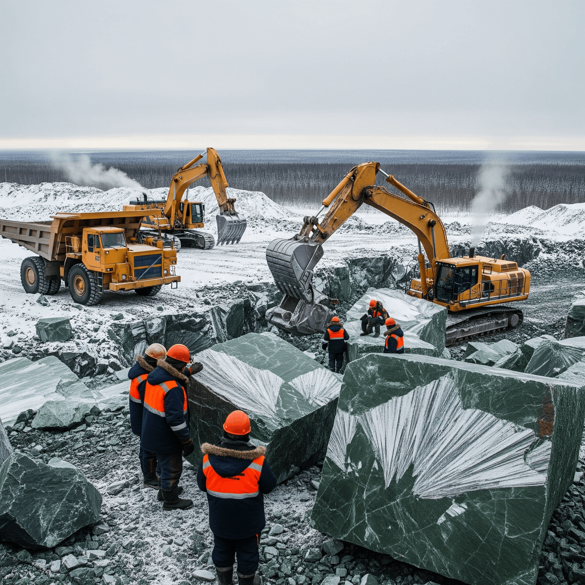 Химический состав: водный силикат магния, железа и алюминия. Твёрдость: 2-2,5 по шкале Мооса (мягкий камень, требует бережного обращения). Цвет: от тёмно-зелёного до изумрудного с серебристыми включениями (асбестовые волокна).