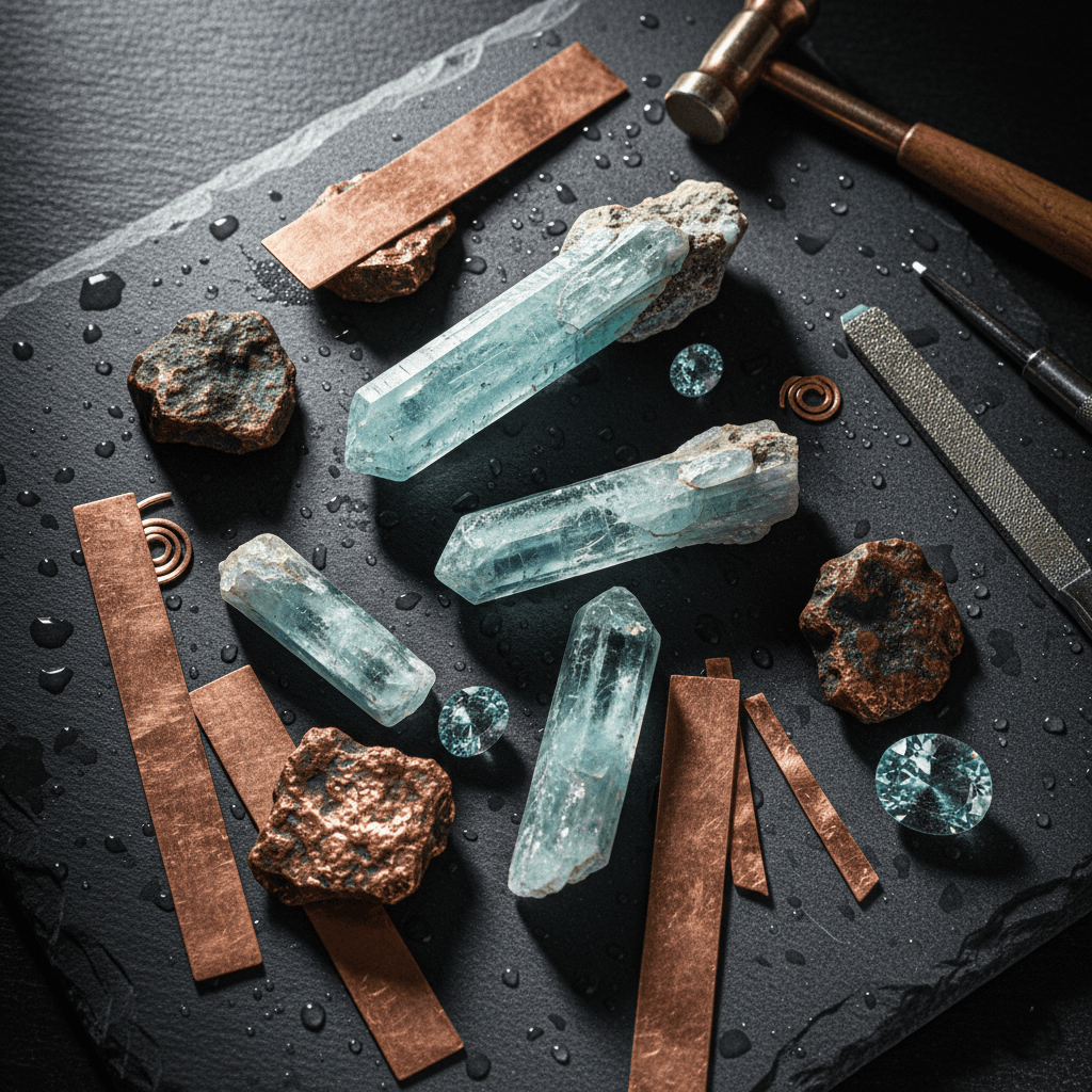 Мы верим, что такой уникальный камень достоин не менее уникальной оправы. Поэтому в наших мастерских медь вручную обнимает каждый кристалл. Методы ручной ковки и пайки позволяют создать не просто оправу, а продолжение природной формы аквамарина. Металл проходит через огонь, подчиняясь замыслу мастера, и приобретает особую фактуру с чернением и патиной, которая со временем будет меняться, подстраиваясь под своего владельца. Это не просто украшение, это часть вашей истории, которая живет и трансформируется вместе с вами.